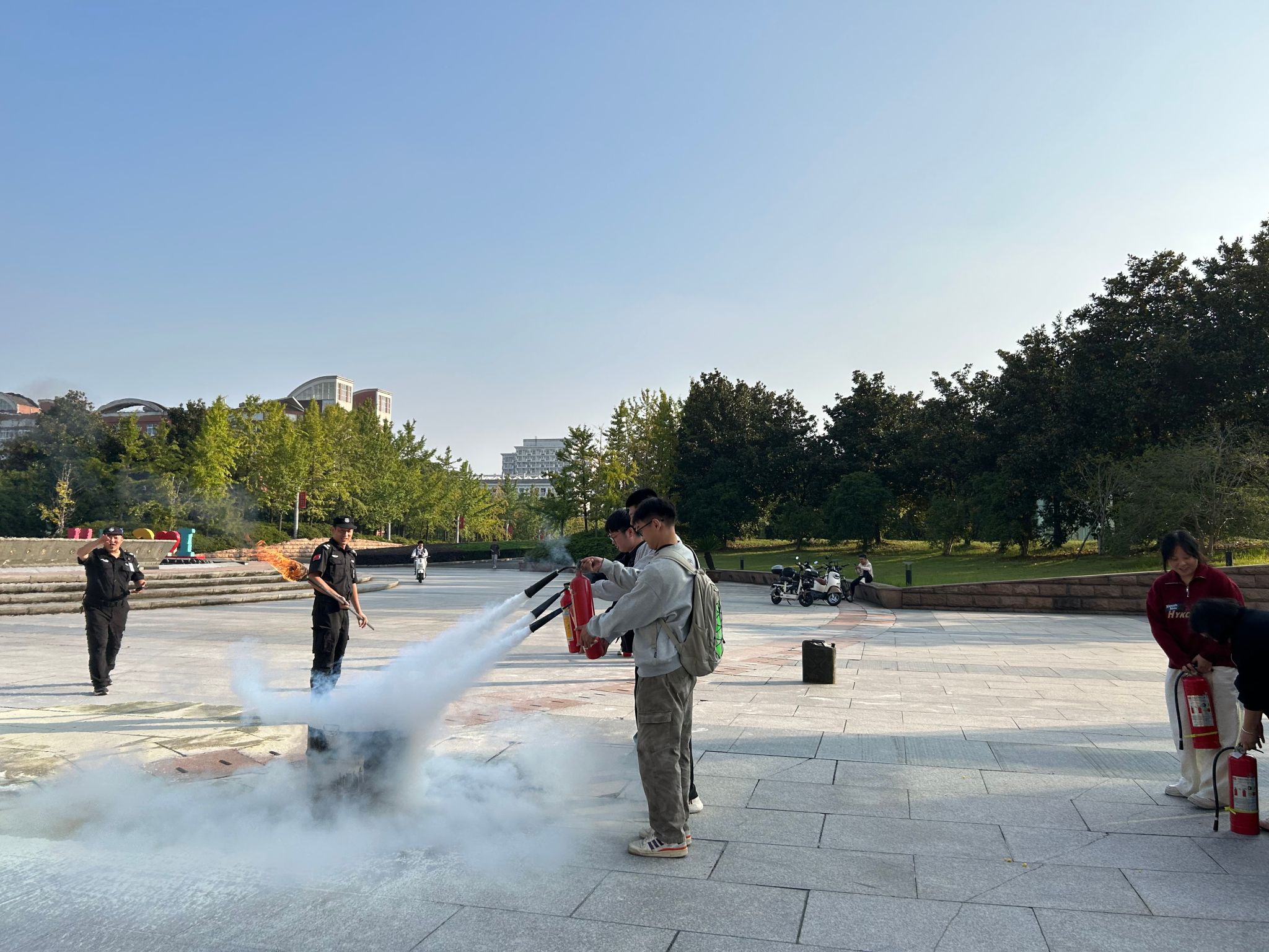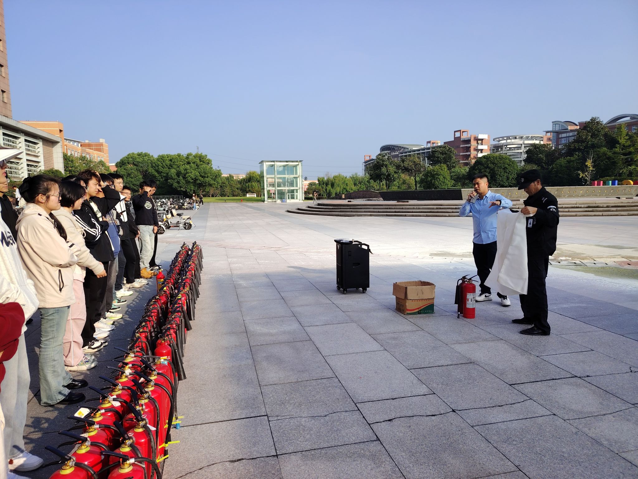 为进一步提升师生的消防安全意识和应急处置能力,材料与化学学院于10月23日下午在图书馆前西广场组织举办了消防安全教育和演练。特别邀请了学校保卫处余江老师、朱永乐老师和校灭火队成员为大家进行了消防安全培训讲解和灭火器示范演练,学院新进教师、研一新生和实验技术人员共100余人参加了本次活动。