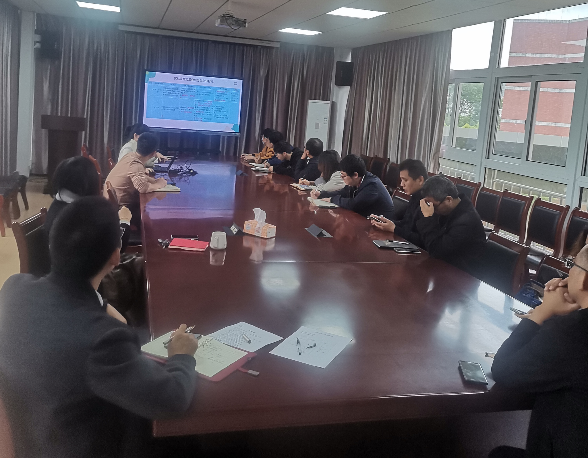 随后大家一起对实验室安全管理办法、最新实验室分级规定、实验室积分制、实验室奖惩制度等内容进行讨论和交换意见。最后,院领导强调了实验室安全在日常实验教学和科研活动中的重要性,要求学院全体教职工注重平时安全检查,强化安全意识,确保日常实验教学和科研平稳有序进行。