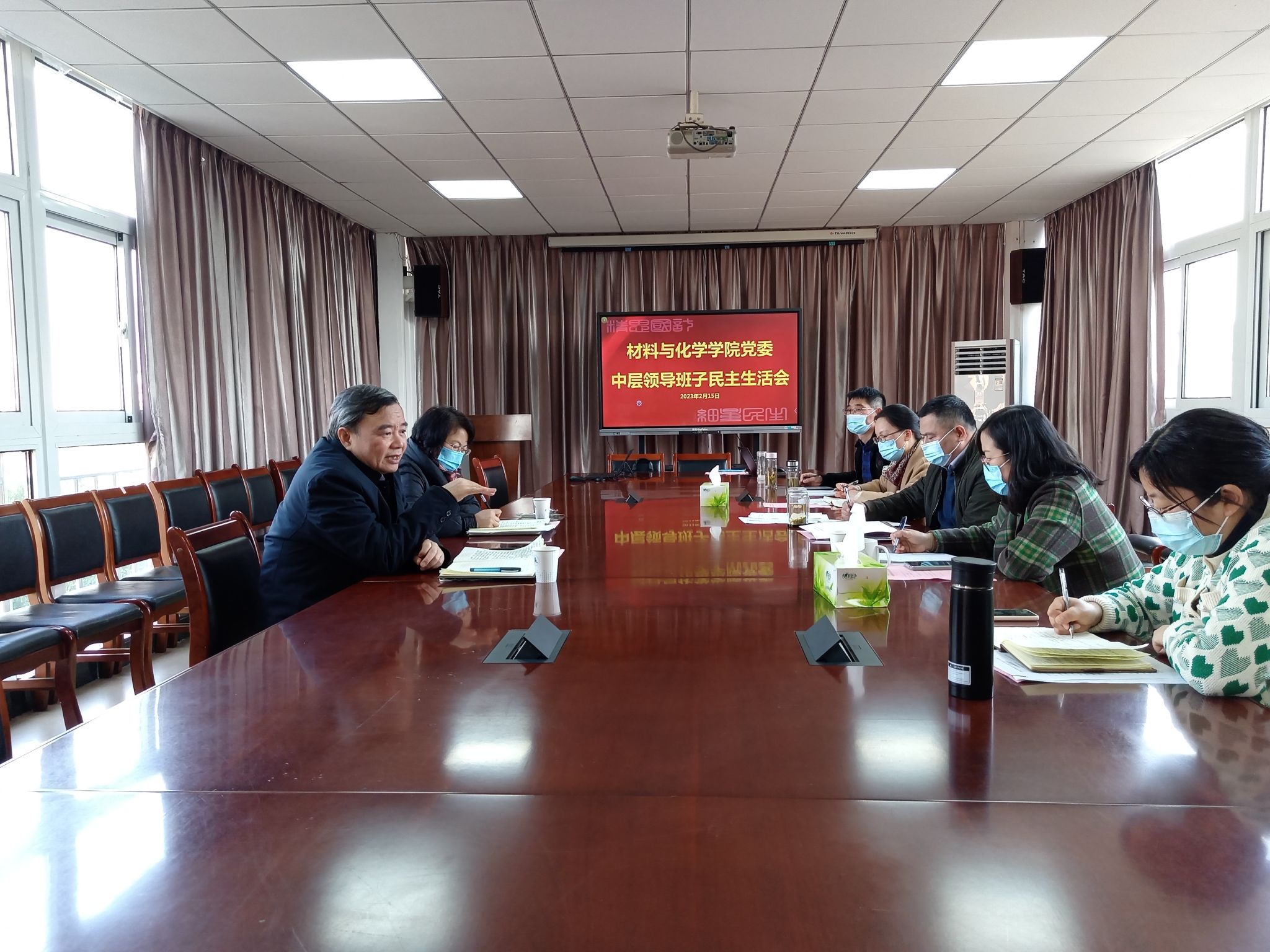 根据学校党委统一部署,2月15日下午,材料与化学学院党委在方南400会议室召开2022年度中层领导班子和党员中层干部民主生活会。校党委副书记肖刚,组织部副部长丁梨慧到会指导,材化学院全体领导班子参加了会议。会议由学院党委书记毛锡锋主持。