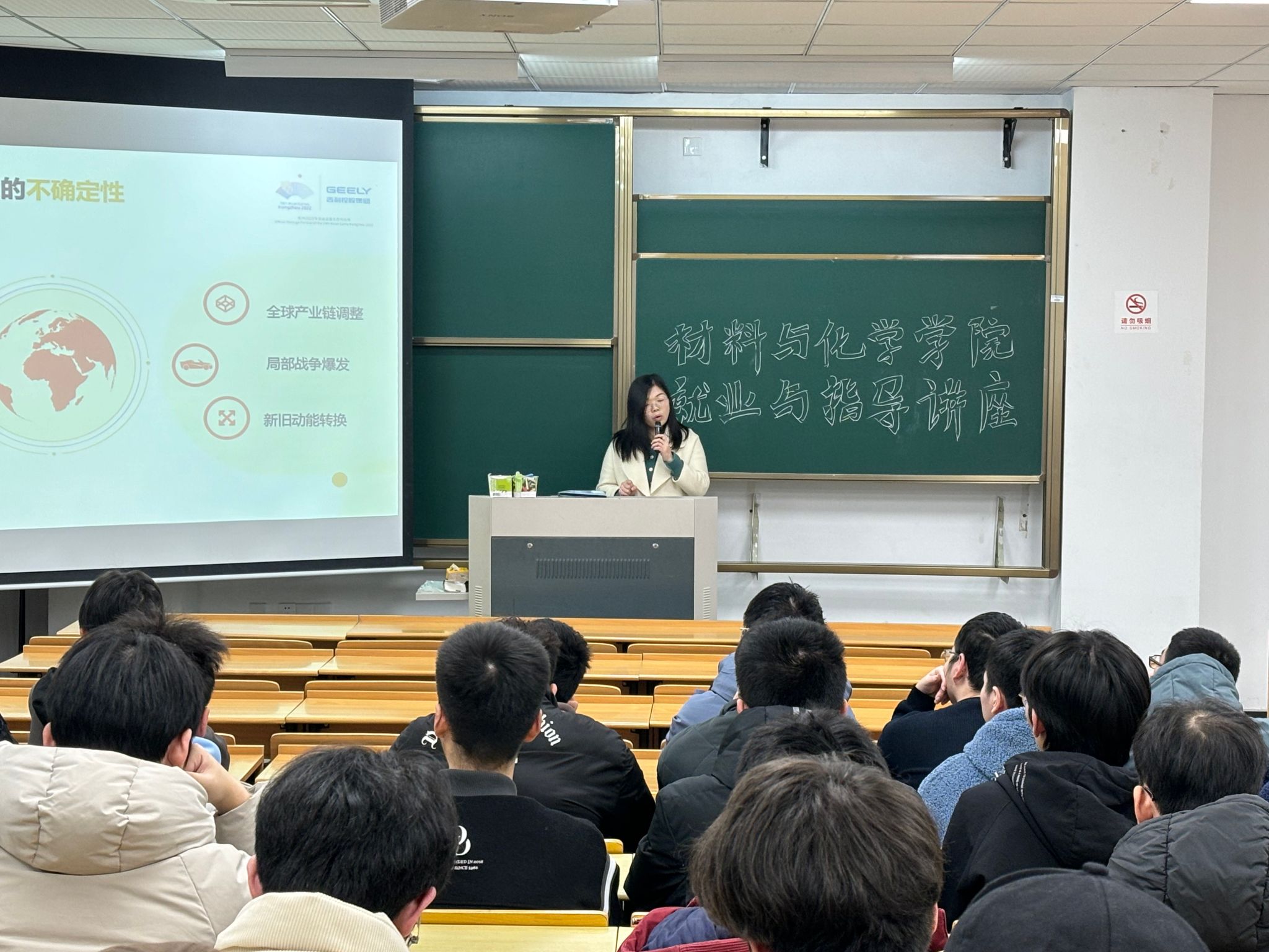 为进一步强化学生的职业生涯规划意识,提升求职就业能力。材料与化学学院于1月3日在翔宇306举办就业指导专题讲座。吉利控股集团校园华东大区经理甘晓霞应邀为材化学子做《简历制作与面试技巧》主题讲座,针对学生简历制作及面试开展相关培训,学院大四毕业生参加。