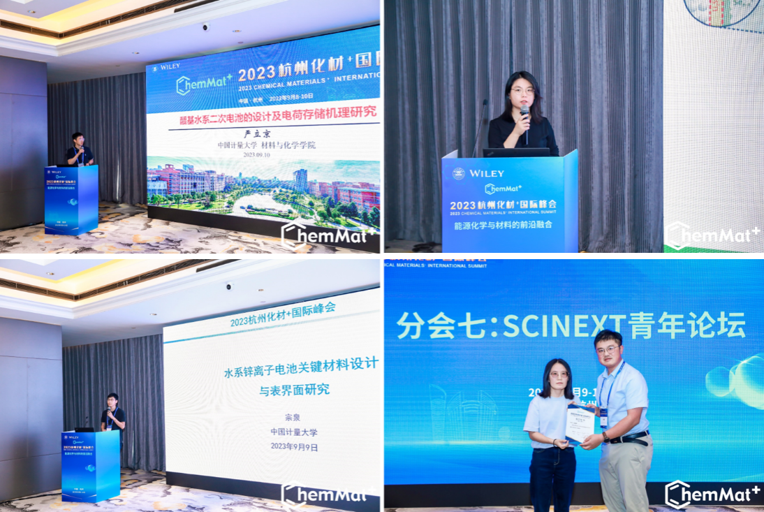 2023年9月8-10日,由WILEY出版集团与浙江工业大学联合发起的杭州化材+国际峰会”在杭州顺利召开。本届峰会以“能源化学与材料的前沿融合”为主题,邀请国内外能源化学和材料相关领域的专家、学者,针对当前能量储存和转换领域的热点研究和未来发展趋势展开深入交流,展示国内外能源化学和材料领域所取得的最新研究进展和成果。材化学院教师积极参与本次盛会,新能源材料与材料表面防护研究所金成滨研究员参与了会议工作,研究所青年教师严立京、李红燕,以及我院于丹丹、宗泉老师均做了精彩汇报,展示了材化学院在材料、化学和新能源领域的最新研究成果,也汇报了学院和研究所的情况。