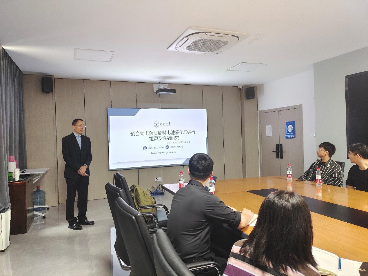 11月9日下午,“材高行远”创新创业论坛第三十一讲在明德北楼B102会议室开讲。浙江大学化学工程与生物工程学院长聘副教授和庆钢作了题为“聚合物电解质燃料电池催化层结构重塑与性能研究”的报告,材化学院师生30余人参加了此次报告会,会议由材化学院教授陈达主持。