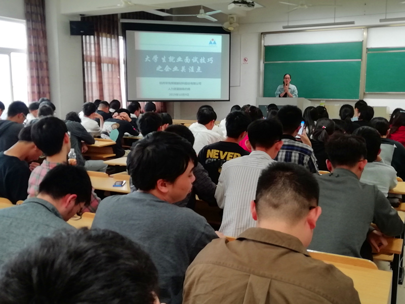 陈约南站在企业的立场,从“自我介绍要有个人见解和个人特色”、“来面试前一定要先了解公司情况”、“专业知识和理论要经得起拷问”、“切忌答非所问,影响考官的情绪”、“回答问题,结论在先,叙述在后”、“简历的制作和社团活动、工作经历的介绍非常重要”和“场景的问题回答也非常关键”等七个方面展开论述。特别强调了衣着、时间观念、注意力和面试态度等注意事项。陈约南结合自身十余年的人力资源从业经验,以多个典型案例入手,生动地阐述了企业在面试时的关注重点,讲座形象生动,同学们表示受益良多。随后,陈约南从一部企业员工自导自演的微电影入手,介绍了杭州华光焊接新材料股份有限公司的基本情况和企业文化,热情邀请同学们加入华光大家庭。据初步统计,共有十余名毕业生同华光进行了进一步的就业洽谈。
