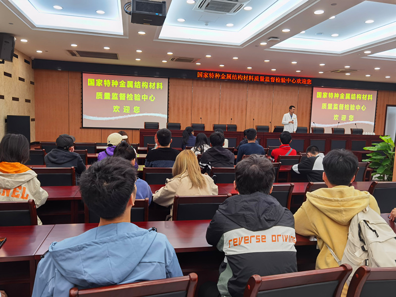 为帮助学生了解材料检测行业动态和企业用人需求,让学生近距离感受企业、体验真实职业环境,做好职业规划,10月21日,材料与化学学院组织学生40余人赴国家特种金属结构材料质检中心(以下简称“国家材料中心”)开展交流和职场体验活动,部分20级新生也参与到活动当中。学院党委副书记金杰、材料科学与工程专业负责人唐高、学工主管杨磊和部分专业老师一同前往调研。
