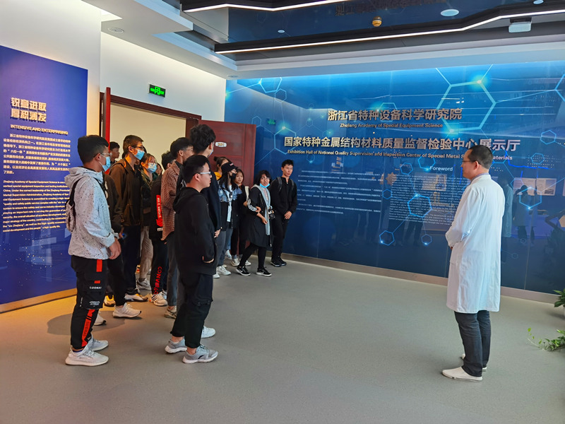 国家材料中心主任钟丰平热情接待了师生一行。钟主任首先通过企业宣传片展示了浙江省特种设备科学研究的基本情况。随后,他从发展历史讲起,介绍了国家材料中心的业务范围、企业文化、企业基本构架、近年来发展势头和目标方向等各方面的情况。互动过程中,教师们就本科生生产实习以及材料标准检测类人才需求进行了深入交流;同学就公司提供的实习岗位及企业对毕业生的要求等进行了进一步交流。最后相关负责人带领同学们参观了国家材料中心的实验室,介绍了检测设备的基本情况和检测的流程。同学们认真观摩,积极提问,公司人员对同学们的问题进行了详细解答。本次职场体验活动作为材料与化学学院就业指导课的特色平台,它的开展有助于我院学生提前感知企业文化和职场氛围,及时做好职业生涯规划,为成长成才奠基,为梦想助力。同学们在活动后纷纷表示此次活动增加了他们对材料检测行业的兴趣,并将在合适的时候到国家材料中心开展生产实习和毕业设计。